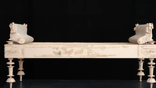 L’AQUILA. «Un capolavoro che attraversa la storia: dai Sabini al Neoclassicismo». Il direttore regionale per i Beni culturali Fabrizio Magani definisce così il letto in osso rinvenuto durante i lavori di ampliamento della strada statale 17 a Navelli. Il prezioso reperto, già in mostra nella capitale, tornerà all’Aquila da sabato prossimo e sarà esposto fino al primo ottobre al Palazzetto dei Nobili, in pieno centro storico, in occasione delle Giornate europee del patrimonio 2013, organizzate dal ministero per i Beni e le attività culturali.