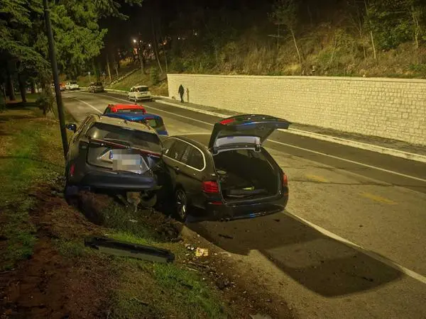 L'AQUILA. Schianto in via Tagliacozzo, nel tratto compreso tra la rotatoria della questura e Porta Castello. Per cause ancora al vaglio dei carabinieri, intorno alle 21 di ieri un uomo ha infatti perso il controllo della sua Bmw in prossimità di una semi-curva, finendo poi con il travolgere altre due vetture parcheggiate sul lato sinistro della carreggiata (una Toyota Yaris Cross e una panda), fortunatamente in quel momento senza alcun passeggero a bordo.