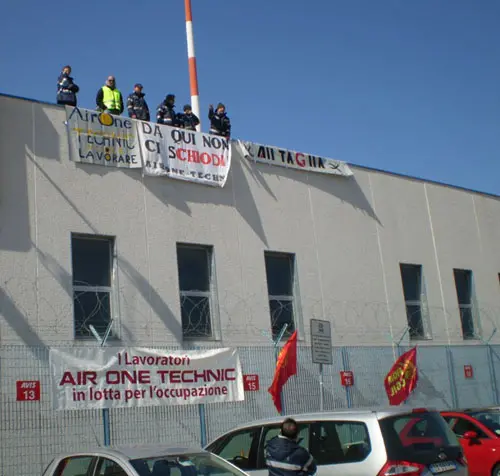Da questa mattina 8 si trovano sul tetto della struttura che la Saga utilizza per il rimessaggio dei propri mezzi e sono decisi a rimanerci fino a quando il governatore Chiodi non darà loro l’impegno di farsi carico del loro licenziamento, deciso dall’Alitalia