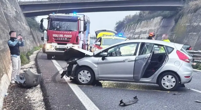 PESCARA. Un incidente stradale si è verificato nel pomeriggio di oggi, 28 febbraio, intorno alle ore 17 lungo la circonvallazione Pescara-Montesilvano in direzione nord, a pochi metri di distanza dallo svincolo dell’uscita “Pescara colli”. Secondo le prime informazioni un autocarro Nissan, appartenente a una ditta di traslochi, si sarebbe ribaltato dopo essersi scontrato con una Ford Fiesta, rimasta fortemente danneggiata nella parte anteriore. Ancora da verificare l’esatta dinamica dello schianto. Due i feriti, fortunatamente non gravi.