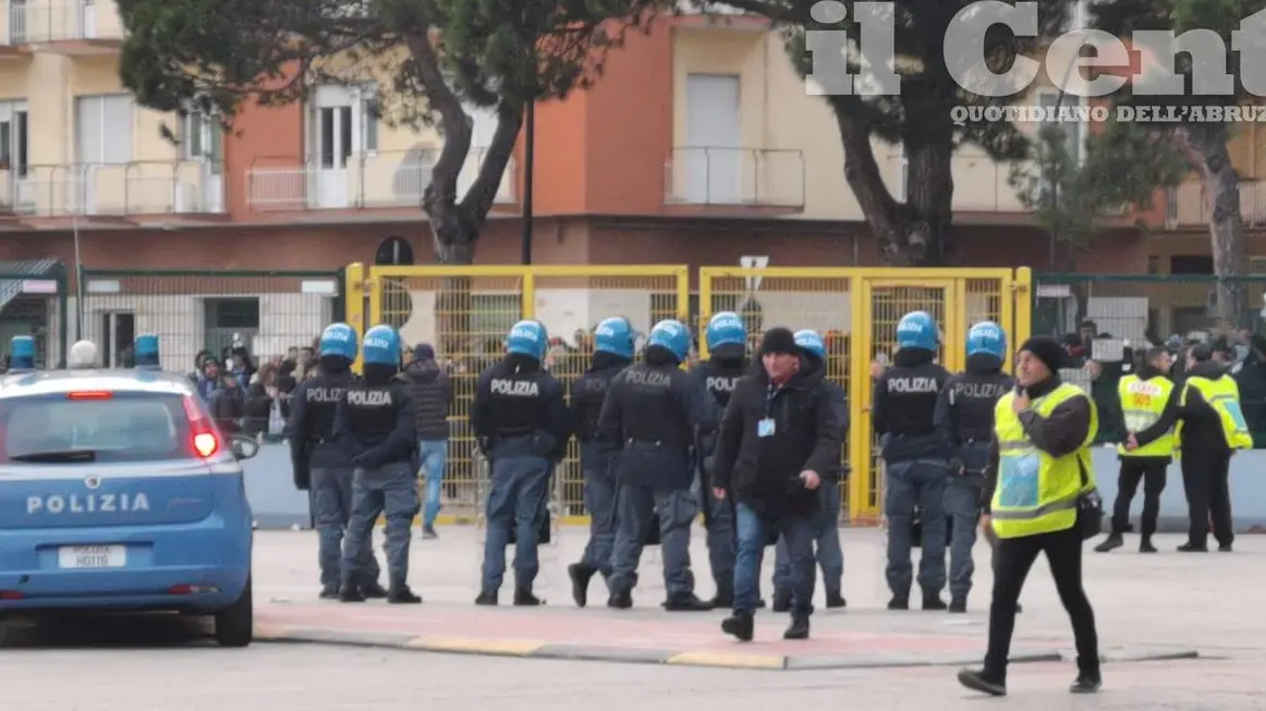 PESCARA. L' imponente il servizio di controllo disposto dal Questore Luigi Liguori dopo la riunione del Comitato Provinciale per l’Ordine e la Sicurezza Pubblica presieduto dal Prefetto Giancarlo di Vincenzo, ha consentito che la manifestazione sportiva si sia svolta senza incidenti. Durante il secondo tempo, nel settore della Tribuna Adriatica, un tifoso pescarese ha tentato di accedere nell’area degli spalti confinante con il settore ospiti ed interdetta al pubblico per motivi di sicurezza. Fermato dal personale della Guardia di Finanza, ha proferito frasi minacciose ed ha simulato con la mano il gesto di tagliare la gola ad uno dei militari che lo hanno identificato e stanno procedendo alla segnalazione all’A.G. per il reato di minaccia a Pubblico Ufficiale. Mentre un tifoso del Foggia è stato segnalato per aver tentato di accedere allo stadio con il tagliando intestato ad un'altra persona. Dai controlli è emerso che il 30enne è residente in un Comune della provincia di Foggia ed ha diversi precedenti di polizia. Per lui è scattata la denuncia all’Autorità Giudiziaria per inosservanza del provvedimento prefettizio emesso per ragioni di sicurezza pubblica e falsa attestazione sulla propria identità personale.