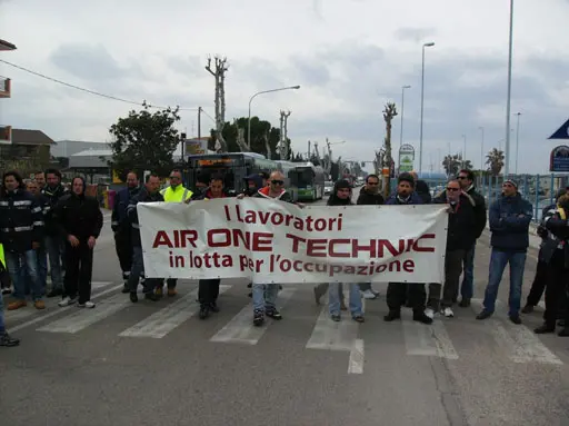 Alla scelta di compiere questa azione di forza i circa settanta lavoratori del centro manutenzione sono giunti dopo aver avuto la certezza dell’arrivo dei responsabili Alitalia da Roma, che infatti sono arrivati poco dopo mezzogiorno. Gli operai della AirOne Technic pretendono un colloquio con gli ingegneri giunti da Roma e per ottenere ciò sono saliti tutti sul tetto dell’aeroporto, sopra la zona partenze.