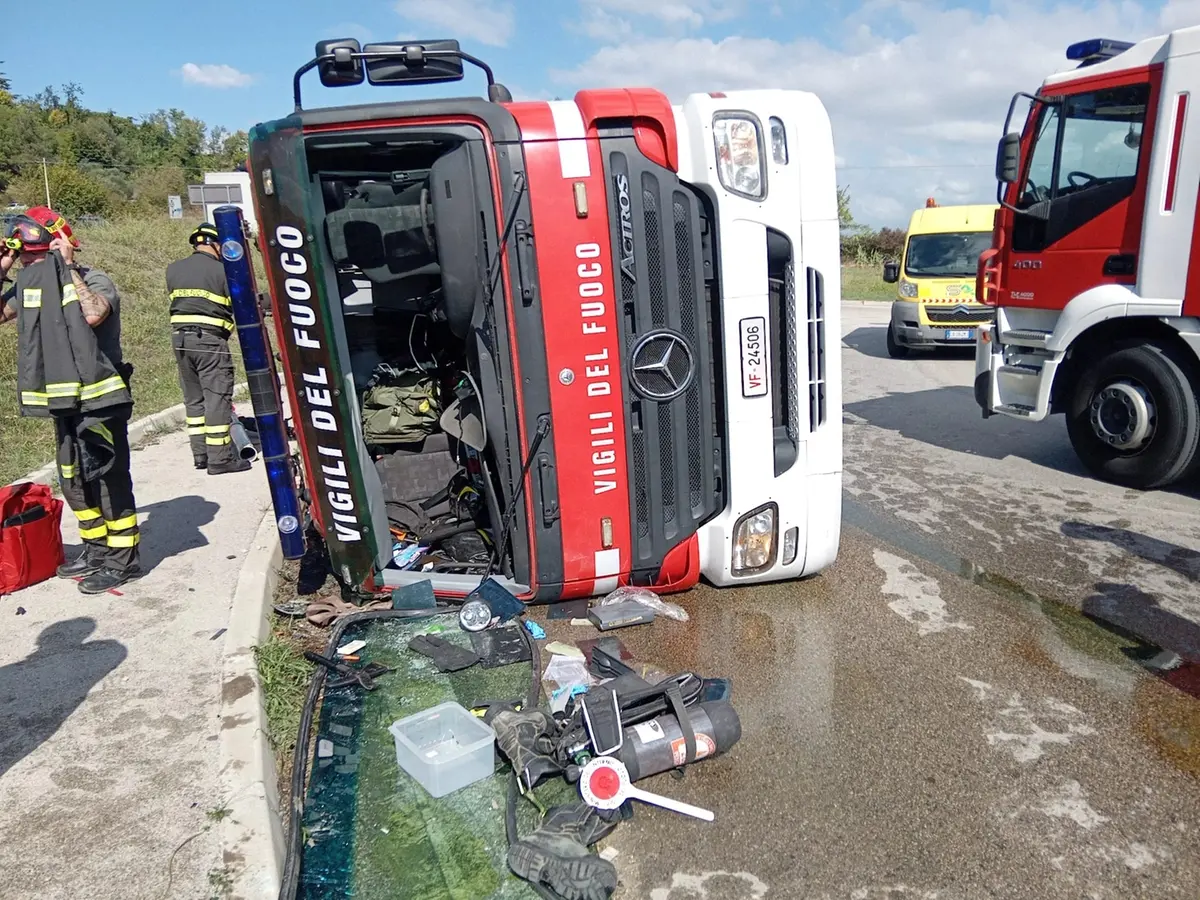 PESCARA. Incidente alla rotonda di Villanova, vicino allo Sweet Point, dove un mezzo dei Vigili del Fuoco si è ribaltato mentre era diretto su un intervento di soccorso. Il veicolo, con a bordo cinque operatori, per cause ancora in fase di accertamento ha perso il controllo terminando la corsa capovolto al centro della rotatoria. L’incidente ha immediatamente fatto scattare l’allarme. Sul posto sono intervenuti i mezzi del 118, diverse ambulanze e l’elisoccorso, atterrato poco distante per il trasporto in ospedale. Gli altri quattro componenti dell’equipaggio sono stati presi in carico dal personale sanitario: le loro condizioni sono in corso di valutazione. Le operazioni di soccorso sono state complesse anche a causa della dinamica dell’incidente e della posizione del mezzo.