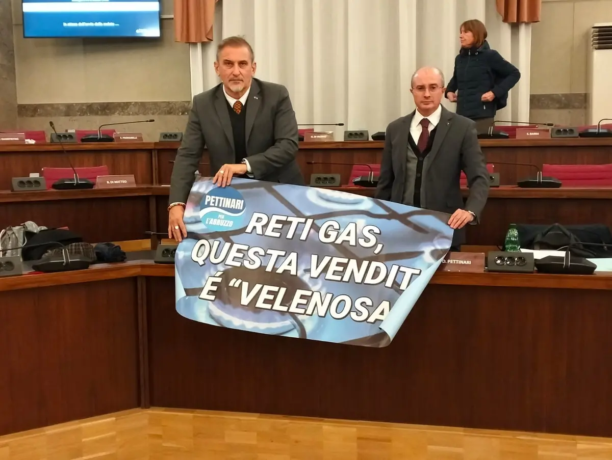 PESCARA. «Noi facciamo gli interessi puri dei cittadini di Pescara e gli interessi sono quelli di dismettere le reti del gas». Il sindaco Carlo Masci di Forza Italia ha annunciato così il voto compatto della sua maggioranza: con un 18 a 10, ieri, il centrodestra ha detto sì alla vendita delle condotte. Un voto tra le proteste: «Vergogna, vergogna», questo il coro del consigliere civico Domenico Pettinari, autore di una denuncia sul caso che ha innescato un’indagine in mano alla guardia di finanza. Pettinari e Massimiliano Di Pillo hanno esposto anche uno striscione: “Questa vendita è velenosa”.