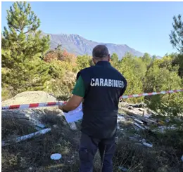 Durante l'ispezione della discarica, i militari hanno rinvenuto documentazione cartacea e un cellulare abbandonato utile adindividuare gli autori del reato. L'area, un'ex cava, ricade nel territorio delle Gole di San Venanzio, in zona sottoposta a vincolo paesaggistico e non lontana dalla riserva naturale Sorgenti del Pescara.