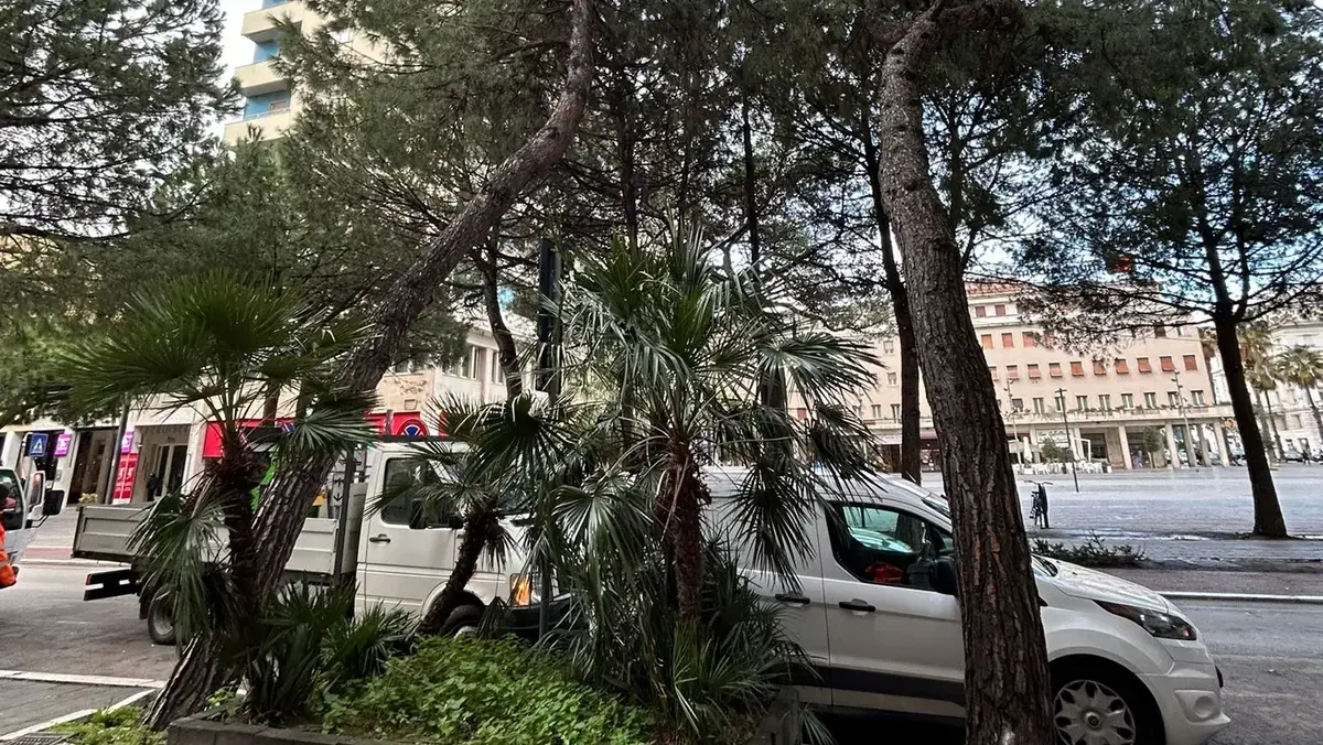 Si inclinano due pini, pericolo per le auto: traffico bloccato in centro a Pescara