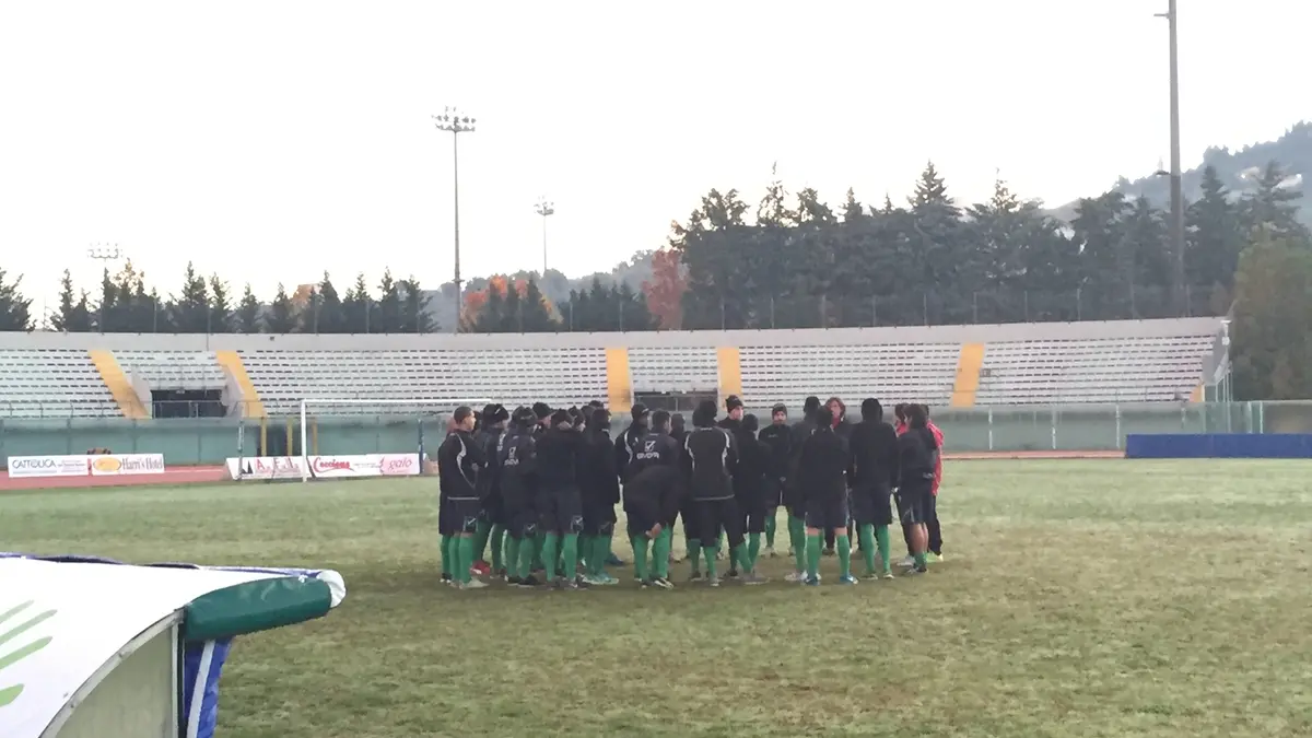 Dopo una breve pausa, la squadra ha ripreso ad allenarsi alle 8 lavorando sulla forza e tornerà in campo nel pomeriggio per svolgere esercizi di tattica. Così ha deciso il patron Giorgio Pomponi, che ha punito i giocatori dopo la sconfitta di Isernia: da oggi fino a venerdì allenamenti punitivi alle sei e mezza di mattina con doppie sedute. "Non è una punizione, ma un segnale", spiega invece mister Ronci, "i giocatori devono capire che il loro atteggiamento è sbagliato". Ecco la squadra che entra allo stadio Angelini all'alba.