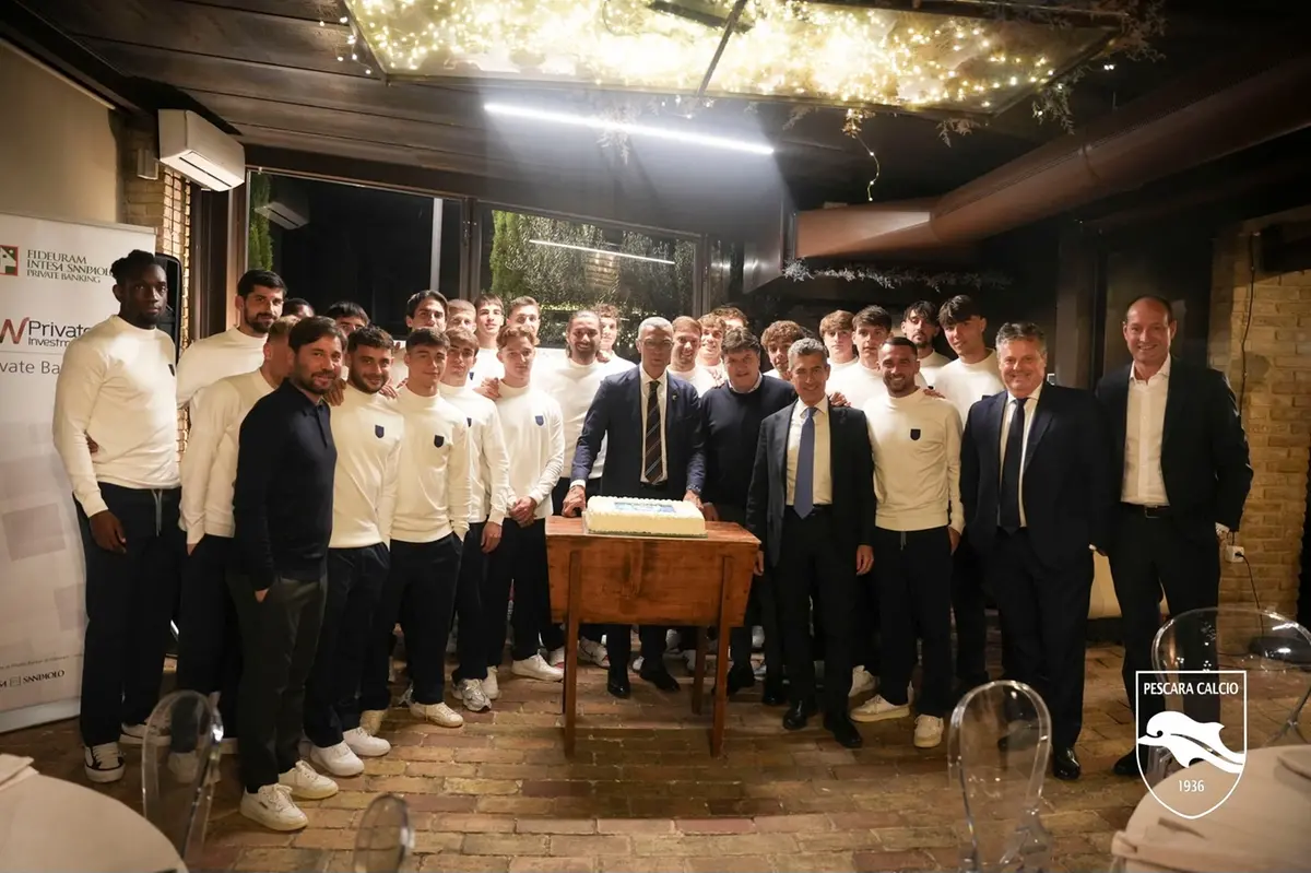 PESCARA. Bella serata di sport all’Osteria “La Corte” di Villa Raspa di Spoltore. Ospite d’eccezione l’ex campione del mondo e capitano dell’Inter, Giuseppe Bergomi, oggi apprezzato opinionista televisivo. All’evento "Sport, palestra di vita. Oltre il talento: cosa ci insegna un campione” hanno partecipato i calciatori del Pescara (assente il solo Dagasso impegnato con l’Under 21), il presidente Daniele Sebastiani, il ds Pasquale Foggia e altri rappresentanti della società del Delfino. Un breve saluto da parte dell’organizzatore Ivano Donatelli, che ha curato l’evento come consulente finanziario di “IWPRIVATE INVESTMENTS”.