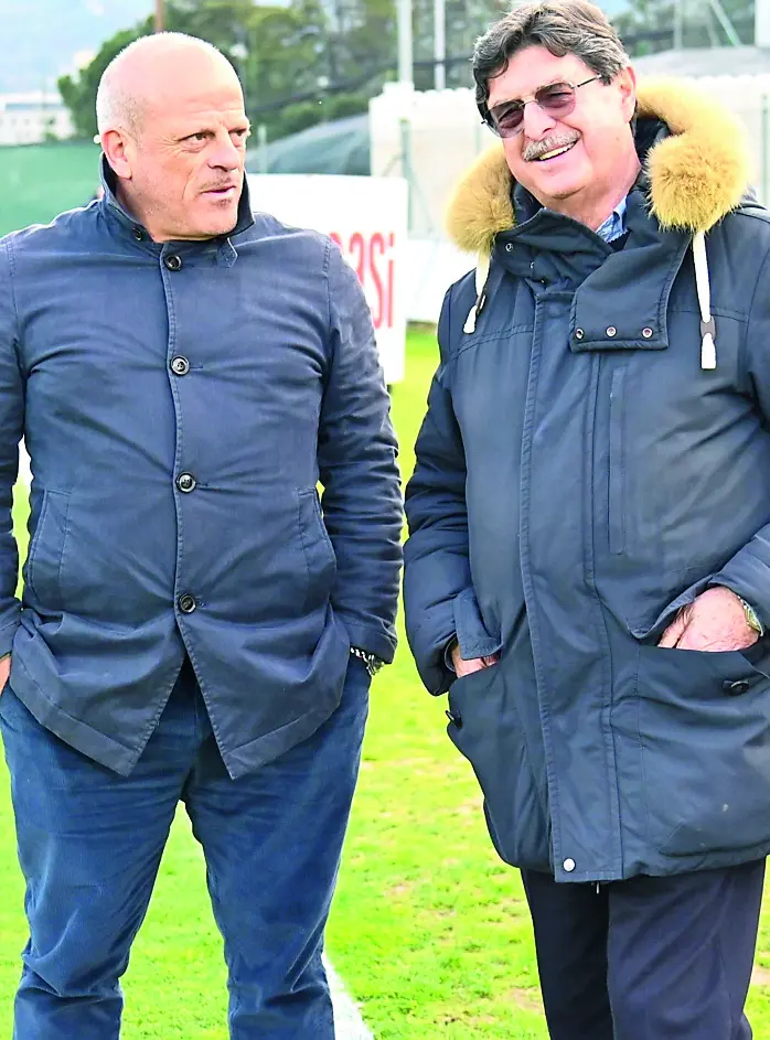 Il club biancazzurro ha il monte ingaggi tra i più bassi del girone, ma lotta per i primi posti. Il direttore sportivo Di Giuseppe: «È una politica vincente». Alle porte la sfida di Perugia. (nella foto, il ds pinetese Marcello Di Giuseppe e il patron del club Silvio Brocco)