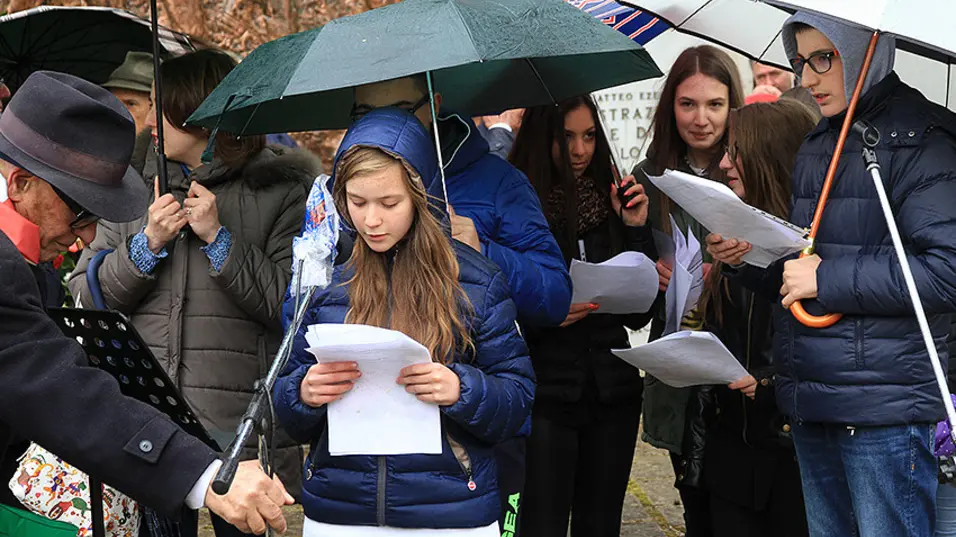 Firma in municipio per «mantenere e sviluppare il ricordo dell’eccidio del 1944» Gli alunni dell’istituto Sabin leggono brani davanti al sacrario dei 33 caduti