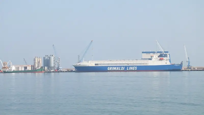 La nave Grimaldi lunga quasi 200 metri attracca nello scalo: caricati quattrocento furgoni della Sevel per raggiungere Monfalcone e poi la Croazia