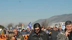I lavoratori della Finmek, in cassintegrazione da 5 anni, chiedono al sottosegretario alla Presidenza del Consiglio dei Ministri, Gianni Letta, in visita all'Aquila, il mantenimento degli impegni già presi per un loro futuro lavorativo