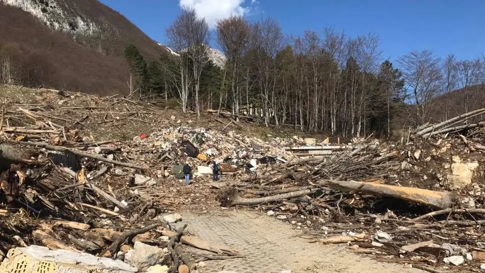 Il sindaco Lacchetta e il custode Colangeli chiedono di rimuovere rapidamente le macerie dell'albergo distrutto per evitare la contaminazione della falda acquifera