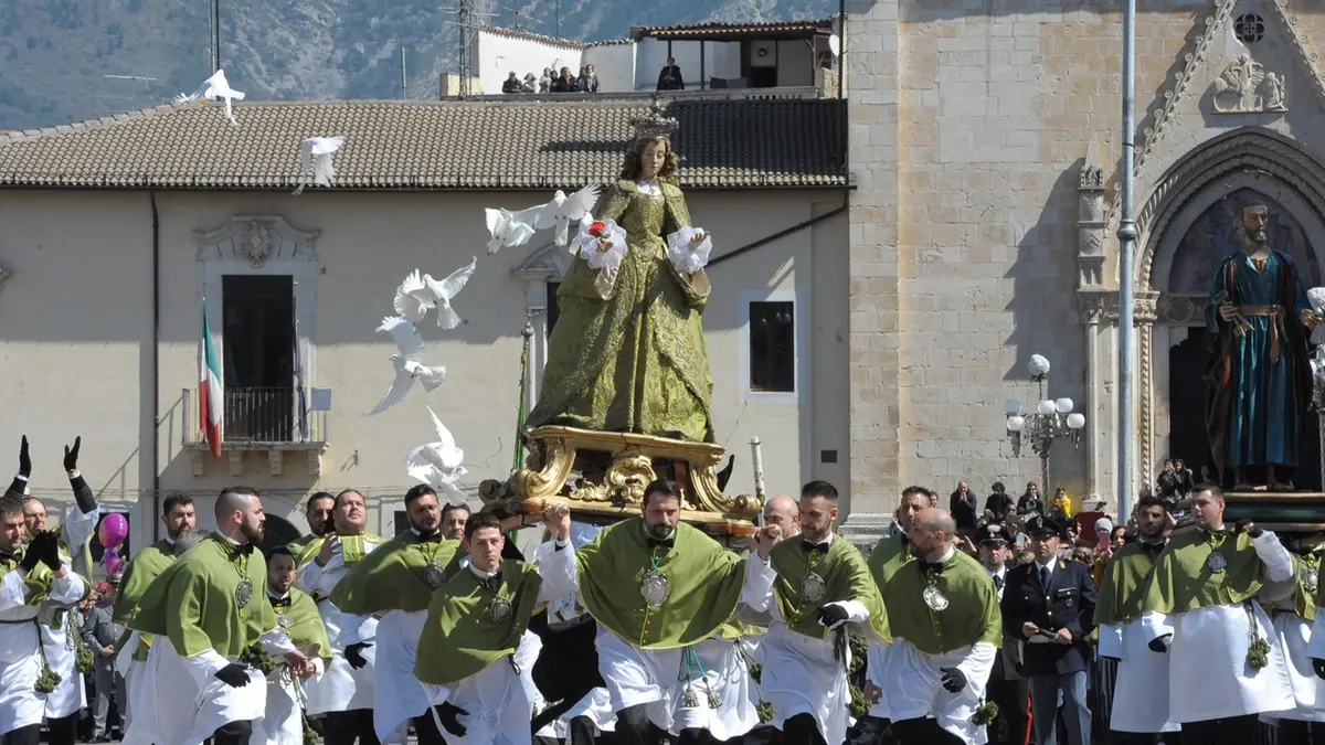 In piazza Garibaldi migliaia di persone hanno assistito alla rappresentazione dell'incontro di Maria con Gesù Risorto. La corsa perfetta, il pubblico commosso, la benedizione del vescovo Angelo Spina