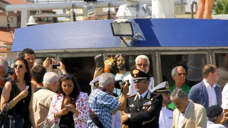 La pazza estate 2014 non cambia la tradizione: la statua del santo patrono, accompagnata da 40 barche, è stata portata in mare per la processione