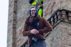 Mario Nugnes ha voluto partecipare alla classica discesa dal campanile della chiesa dell’Assunta per celebrare la festa dell’epifania