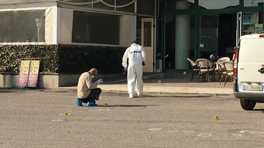 Violenta rissa, forse per un regolamento di conti tra italiani e albanesi, sul piazzale di un hotel. Un uomo è stato colpito alle spalle da un colpo di pistola