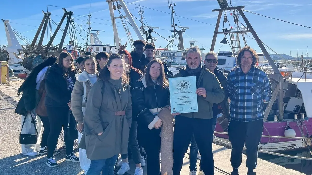 GIULIANOVA. Educare la nuova generazione al rispetto del mare e far capire, a chi avrà il compito di fare accoglienza, che l’Abruzzo ha grandi peculiarità nelle vongole e nel pesce. È stato questo l’obiettivo della visita guidata al porto di Giulianova compiuta con la supervisione della guardia costiera da alcuni alunni dell’istituto Di Poppa Rozzi di Teramo, settore accoglienza turistica, accompagnati dai professori Ramona Iacuitti e Fabrizio Renzi. Ad accoglierli sono stati il presidente della cooperativa Mare Blu Walter Squeo e il consigliere Michele Artone.